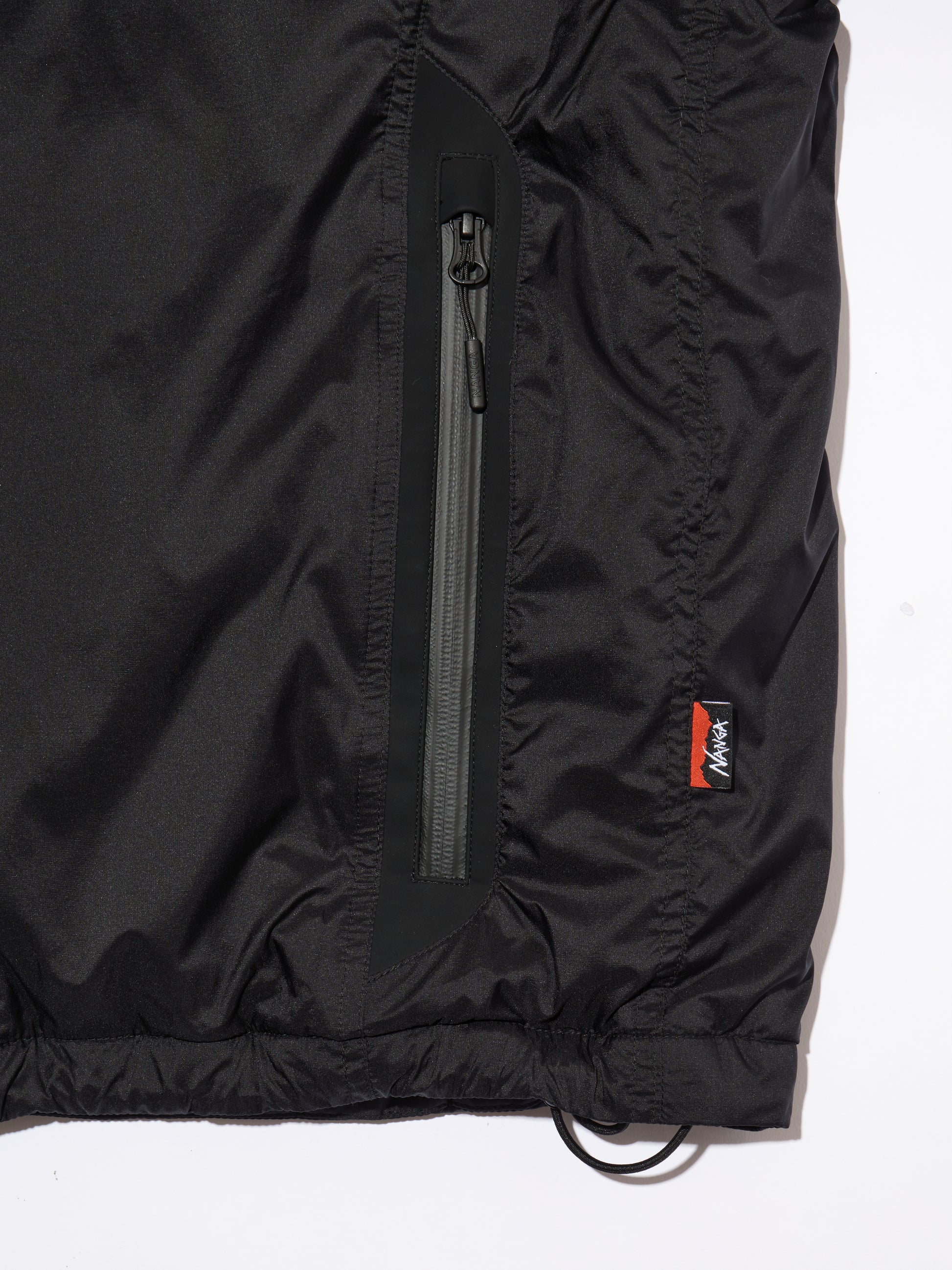 表面に撥水性に富むナイロンタフタ素材、中綿に650FP(フィルパワー)のスペイン産ホワイトダックダウンを贅沢に使用したダウンジャケット。ベースの型からオリジナルで作成したモデルであり、フロントは着脱性能を加味したスラント(斜め)ジップ仕様。フロント両脇・アームのポケットには止水ファスナーを採用。ジャケット内側にもポケットを配置。フード口、両裾にスピンドルが付属、シルエット調整が可能。2色3サイズ展開。国産名門ダウンブランド、NANGAと通算2回目となるチームアップモデル。