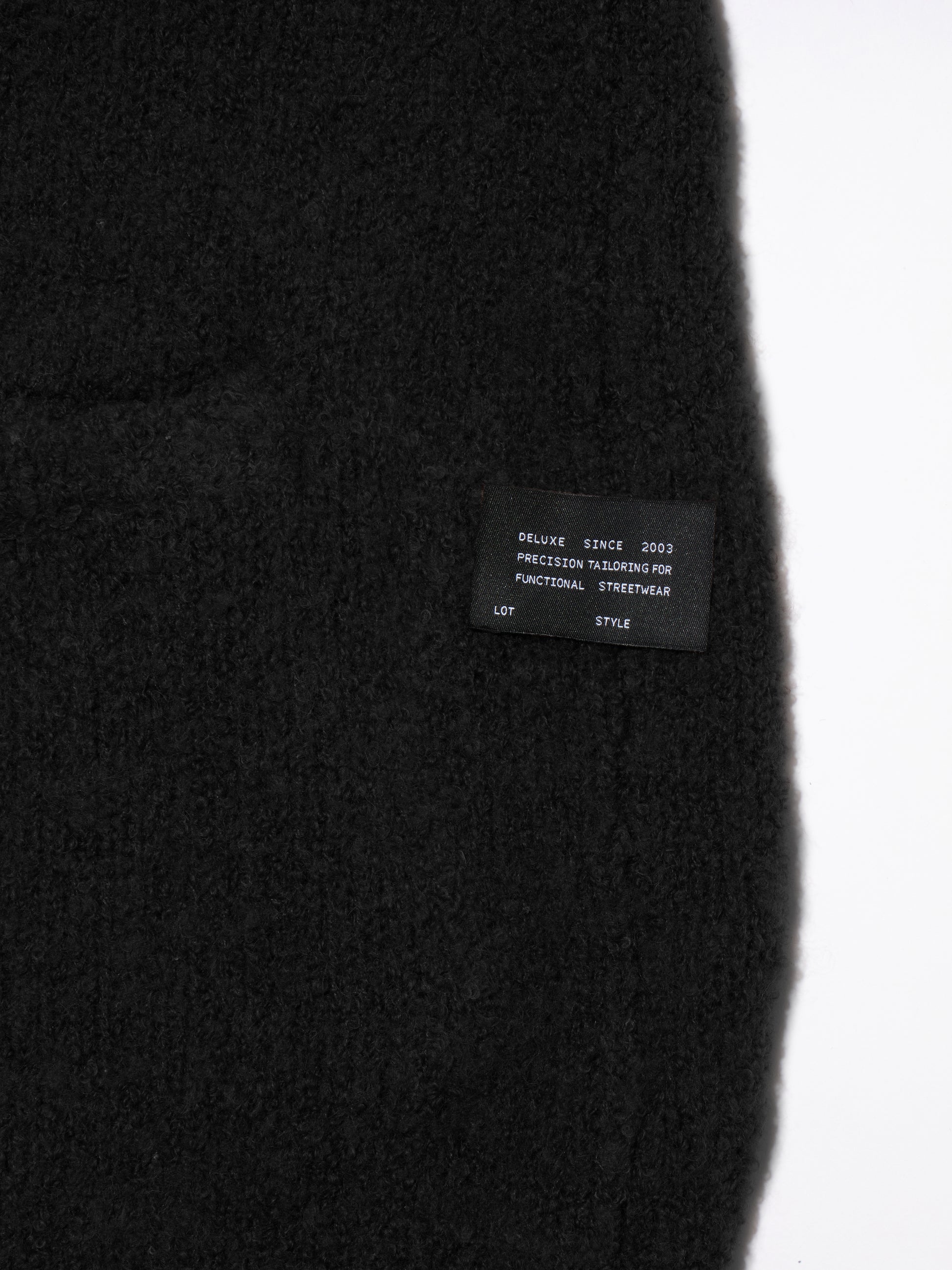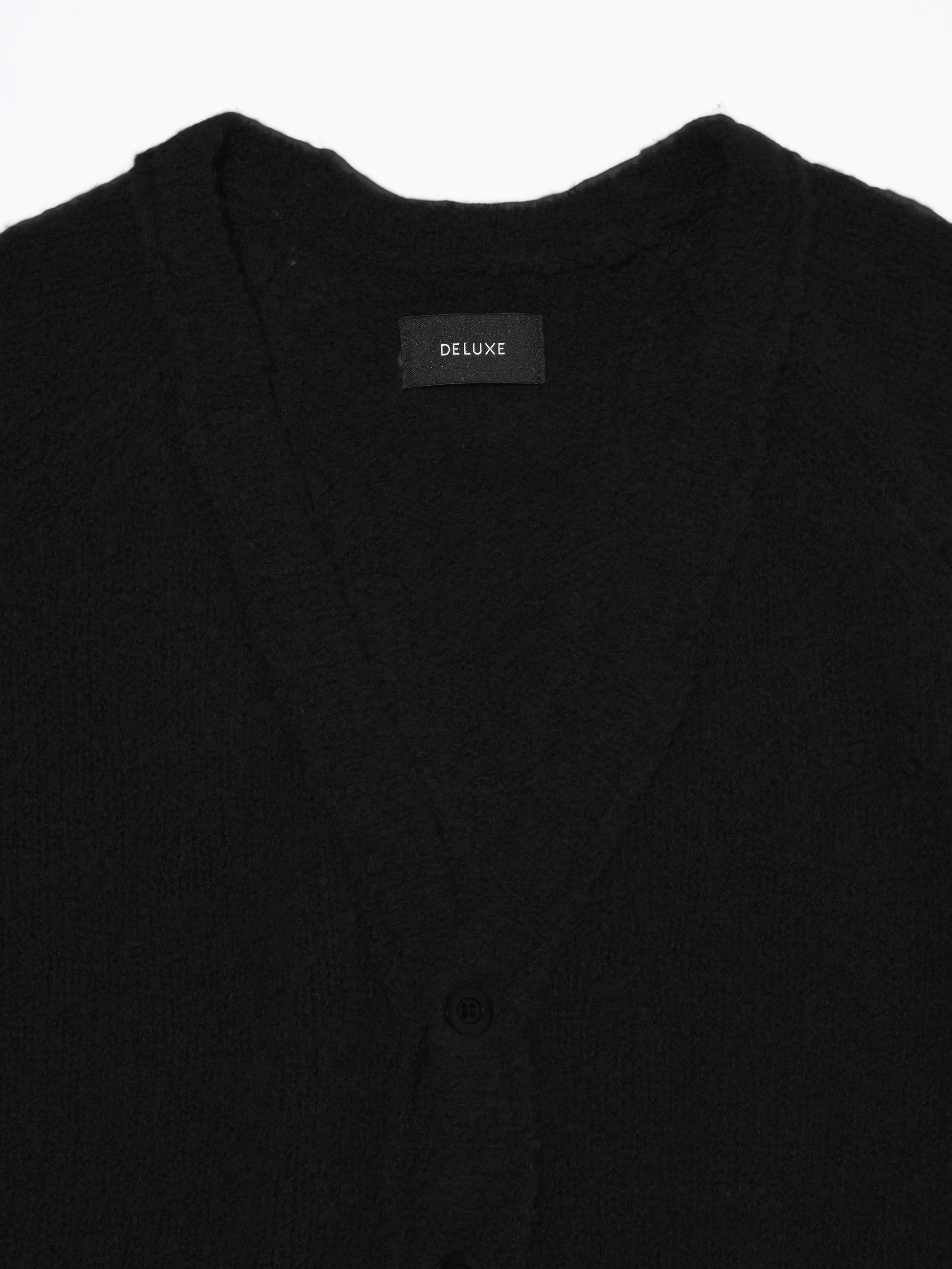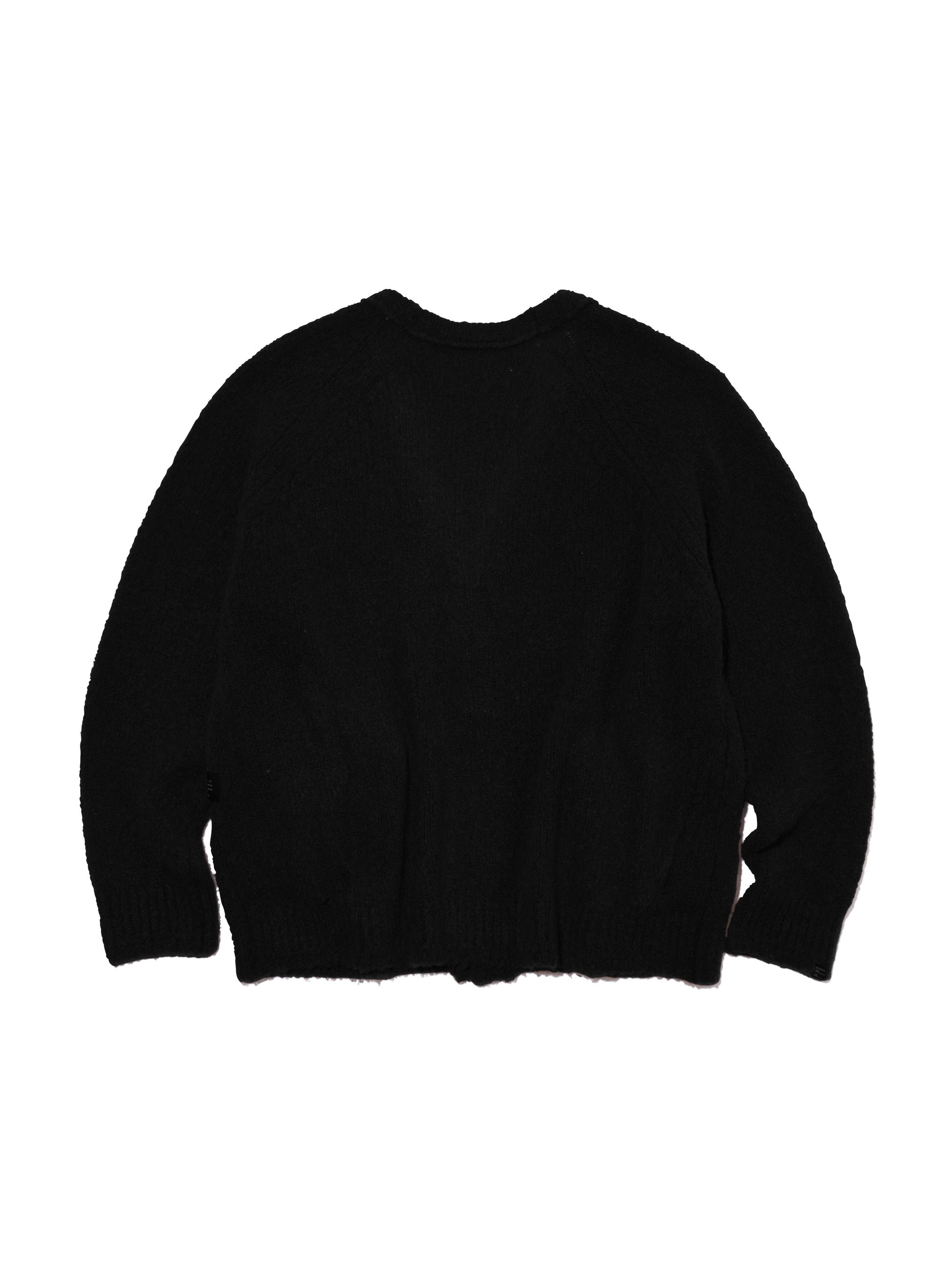 アクリル/ウール/ナイロンの3種混紡生地を使用したカーディガン。両腰にスラッシュポケットを配置。左袖にスクウェア型ネームを叩きつけ。身幅にゆとりのあるシルエット。2色3サイズ展開。