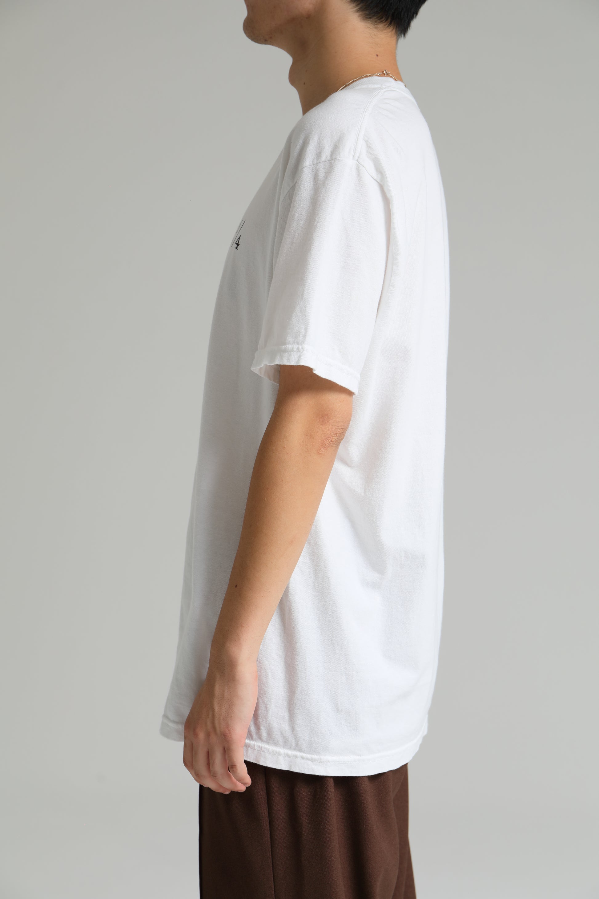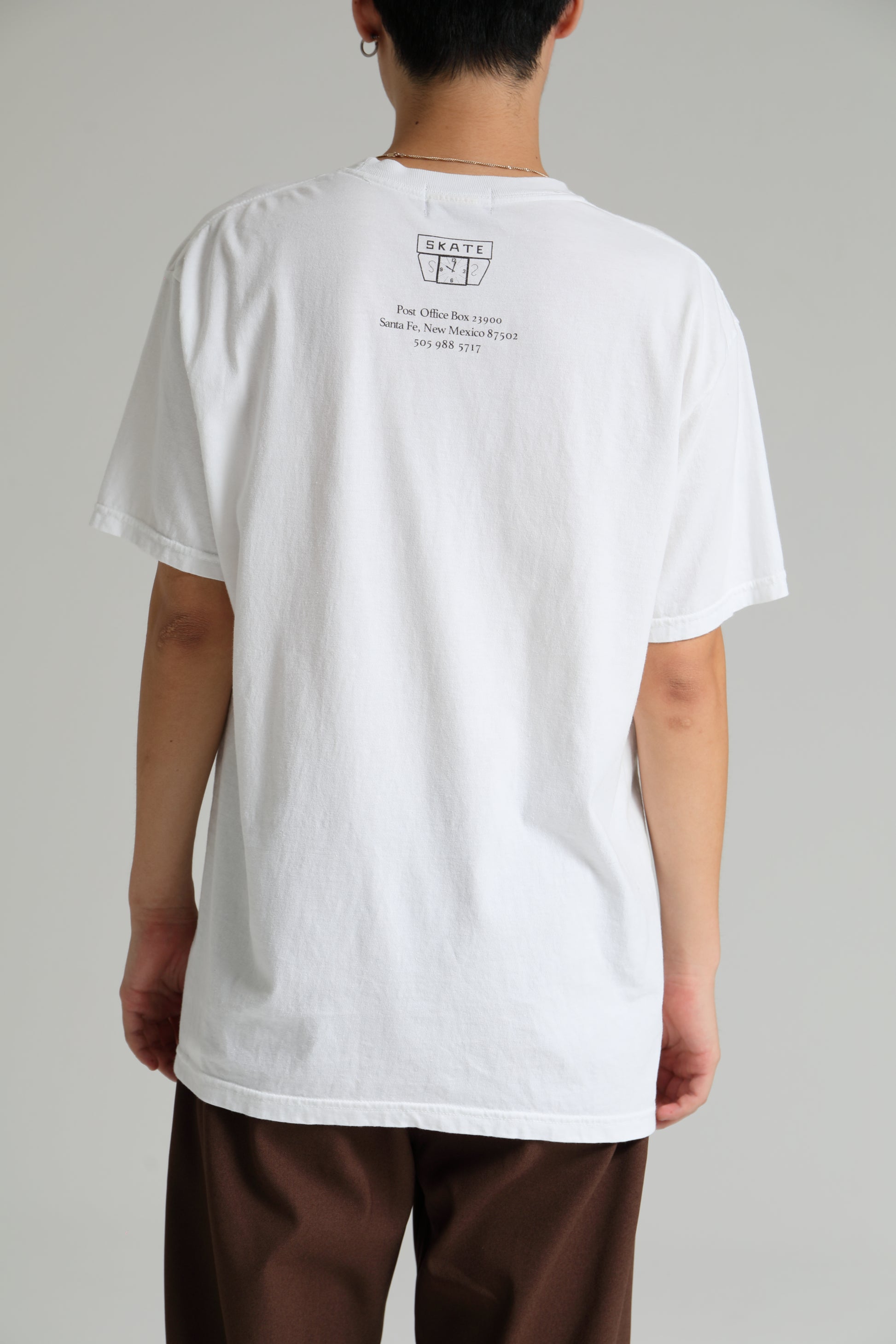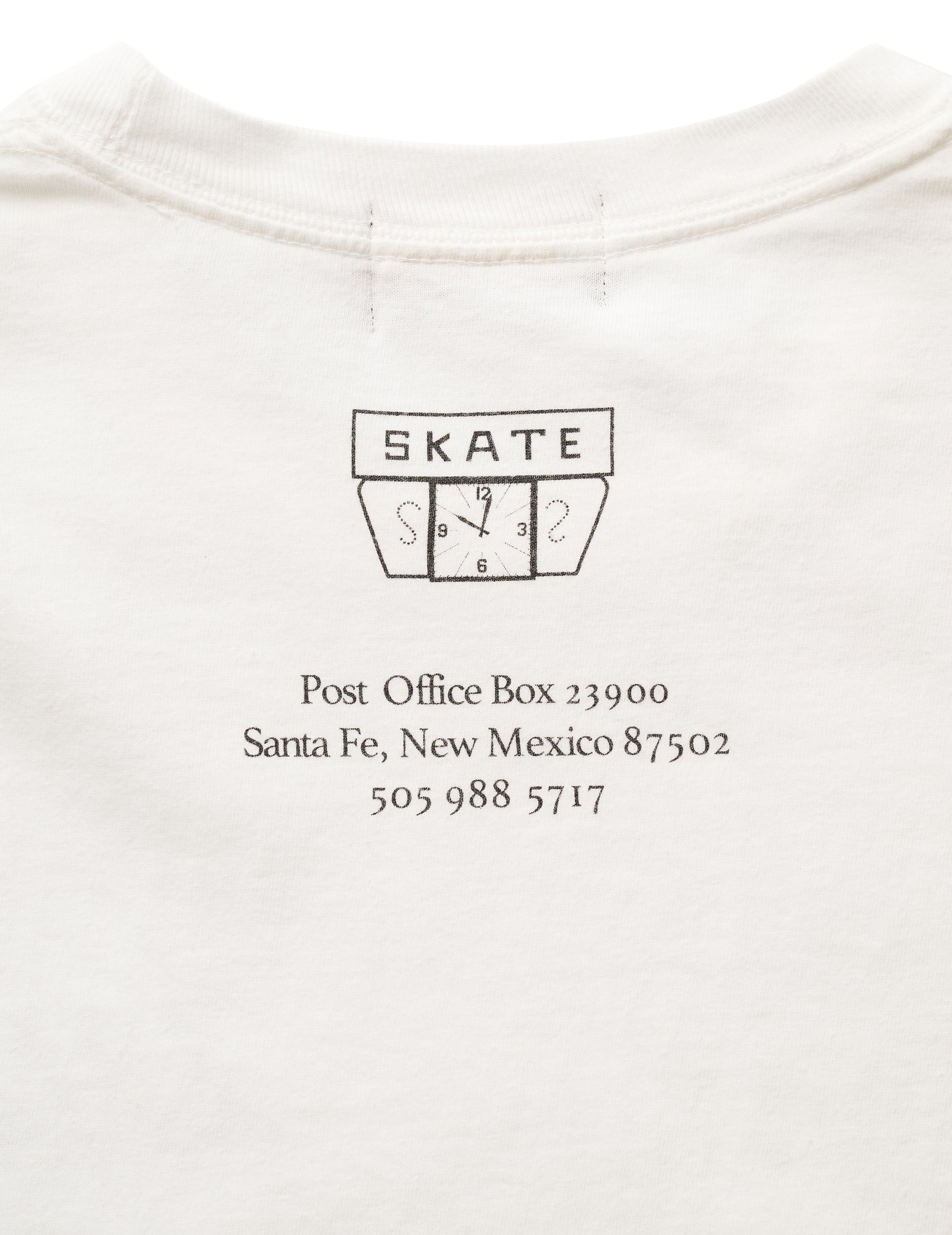 6.0oz のライトウェイトコットン天竺素材を使用 したショートスリーブ T シャツ。左胸に 2 1/4 のレター グラフィック、バック衿下に SKATE 柄時計モチーフをラ バープリント、右裾にコピーライトレターをラバープリ ントで表現。身幅にゆとりのあるシルエット。