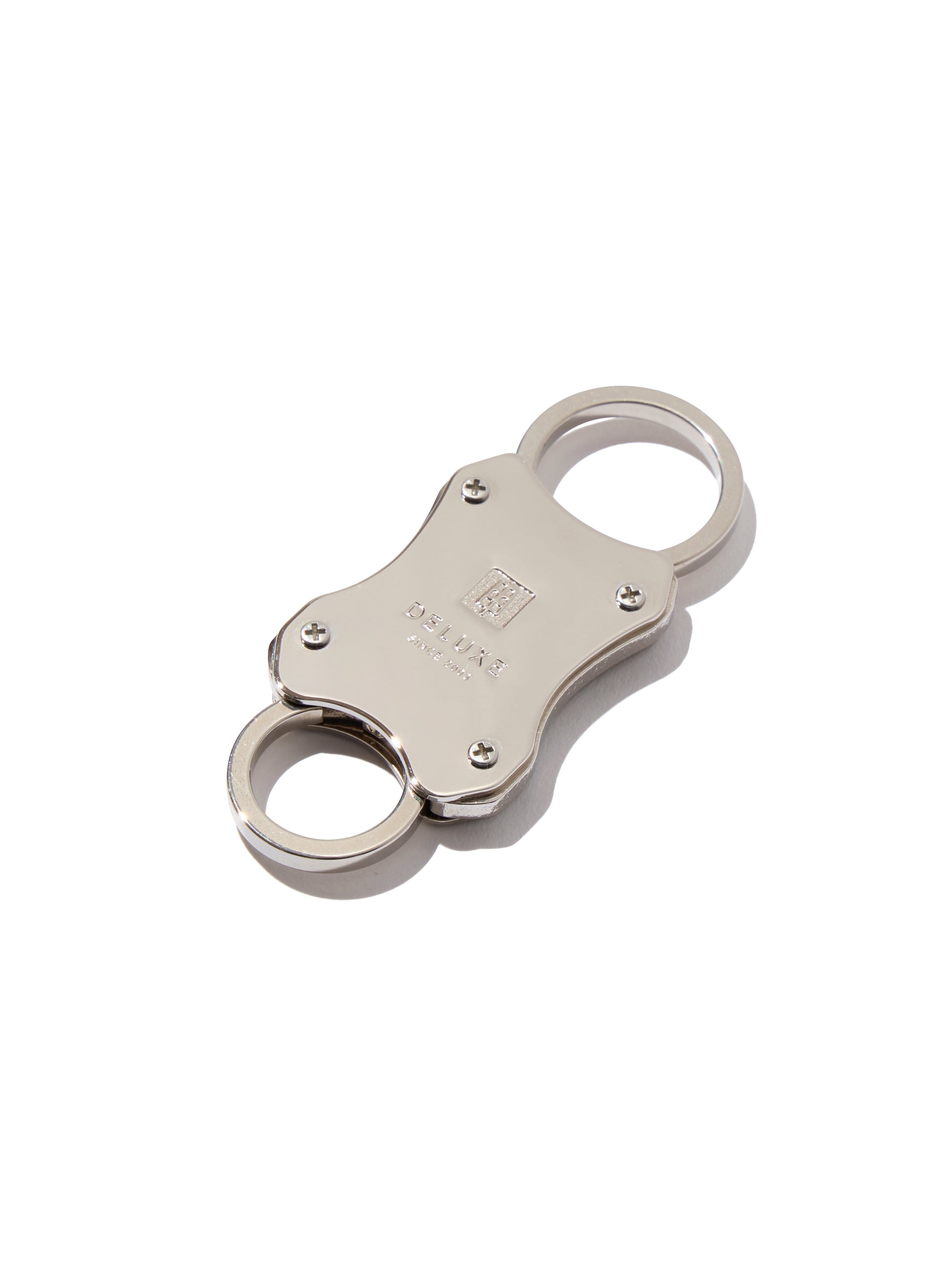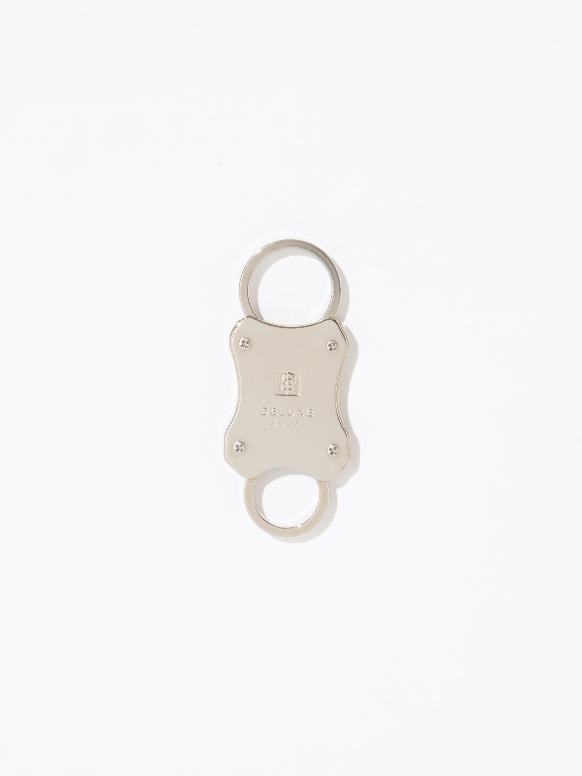 ニッケル素材を使用したダブルエンド仕様のカラビ ナ。1950-60 年代に自動車メーカーなどで販促物として 使用されていたスプリング式のキーリングをベースに、 キャンディデザイン&ワークスがオリジナルでデザインを制作。両側から鍵の着脱が可能なダブルエンド使用。表面に DELUXE ロゴをレーザー刻印。2 色 1 サイズ展開。 2010 年創業の日本のアクセサリーブランド、キャンディ デザイン&ワークスとのコラボレーションモデル。