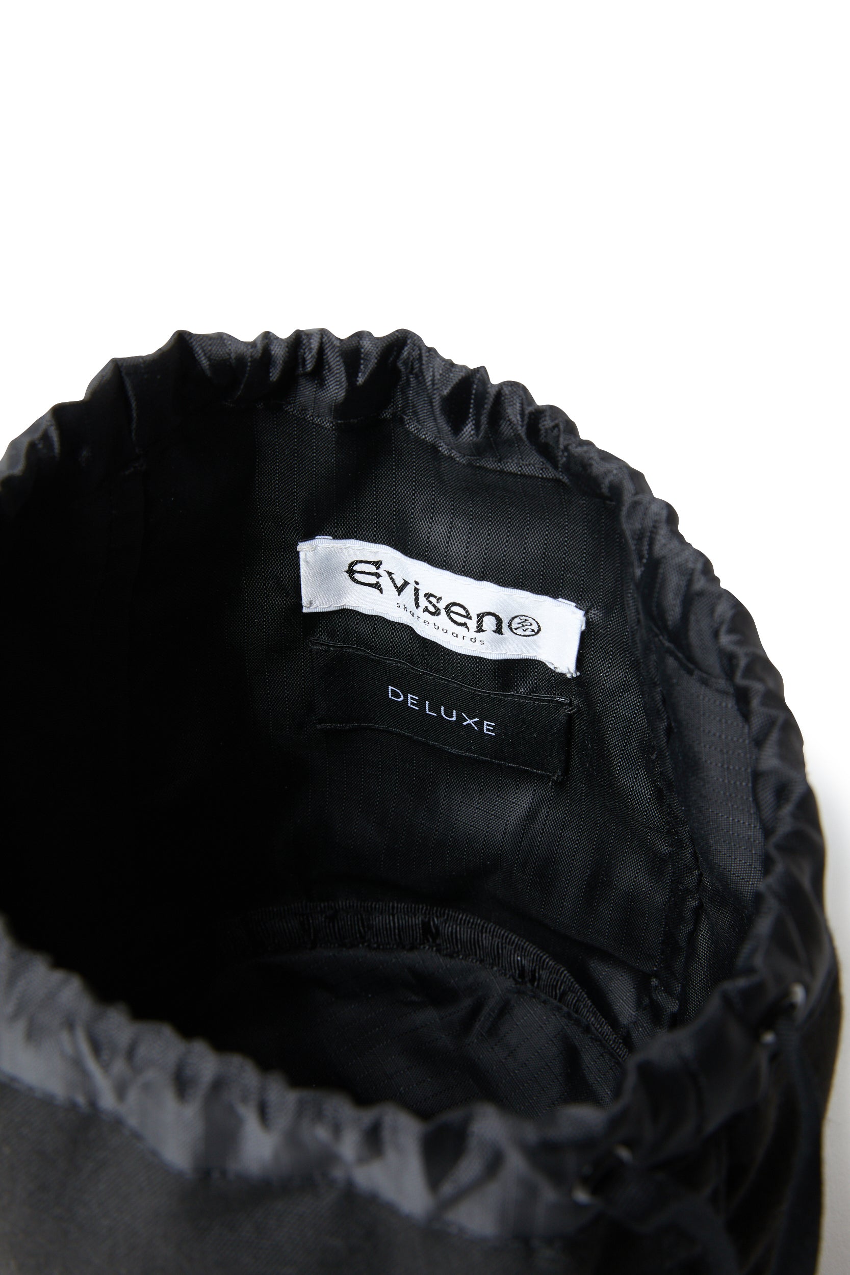 表地にコットンキャンバス、裏地にリップストップナイロンを使用した巾着バッグ。正面に2ブランドのロゴを配置したレクタングルネームを叩きつけ、側面にエンブレムロゴを直刺繍、天面両脇にスピンドルが付属しシルエット調整が可能なデザイン。中面に2ブランドのネームを配置。1色1サイズ展開。Evisenとのコラボレーションモデル。