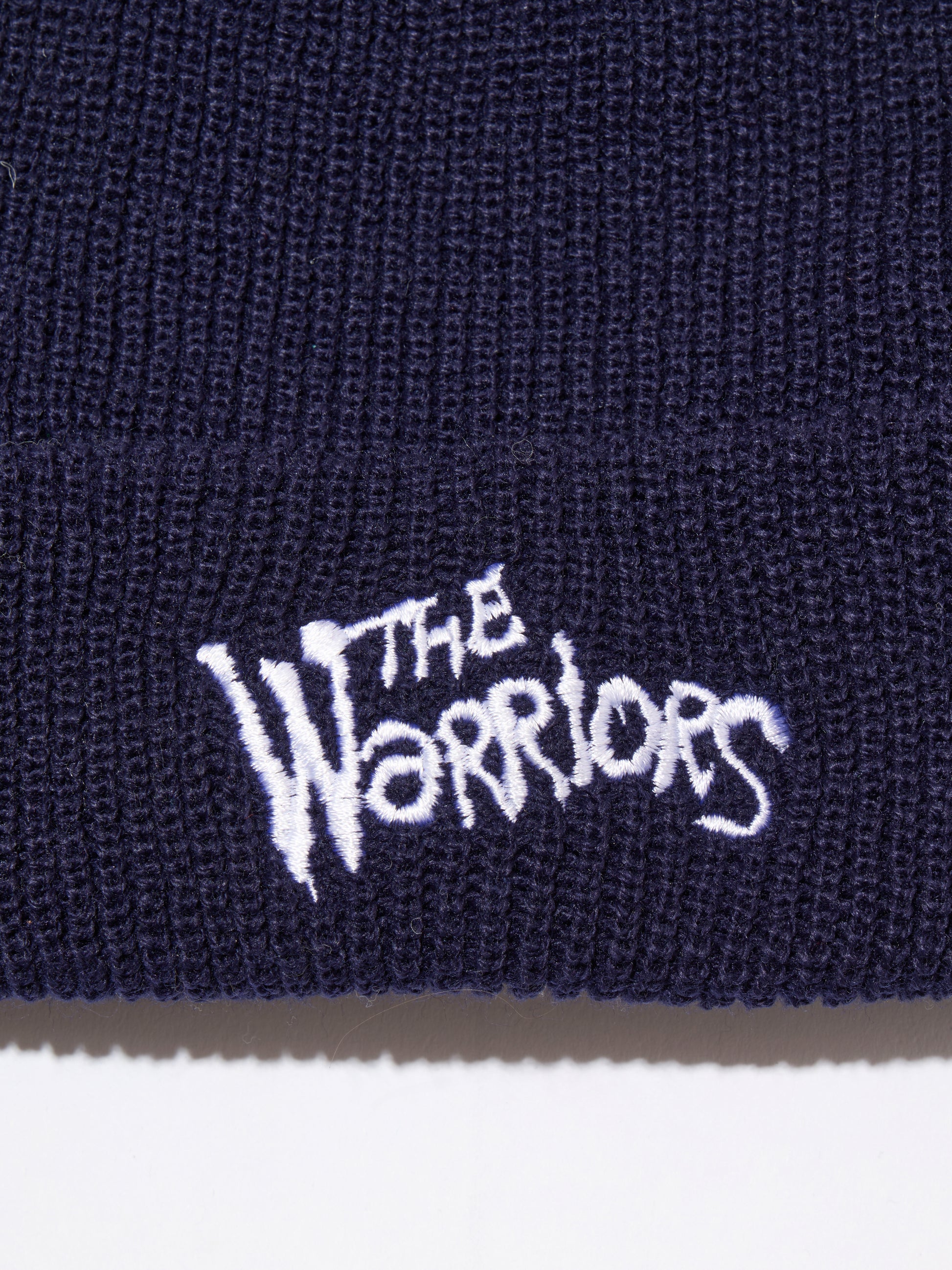 折り返しパネルのニットビーニー。フロントパネルにWarriorsロゴを直刺繍、リブ右上にピスネームを挟み込み。2色1サイズ展開。1979年公開のアメリカ映画『THE Warriors』とのオフィシャルコラボレーションモデル。