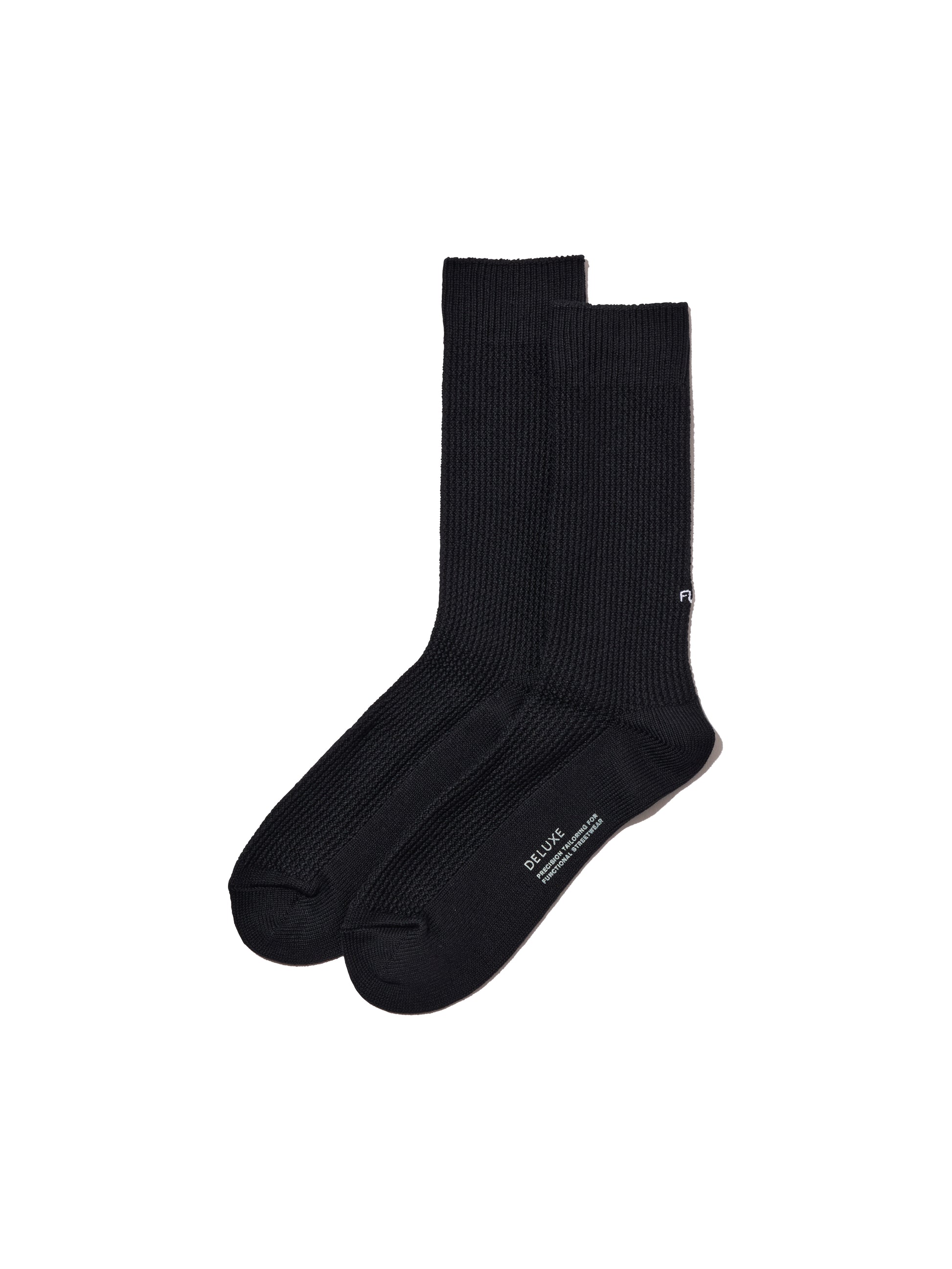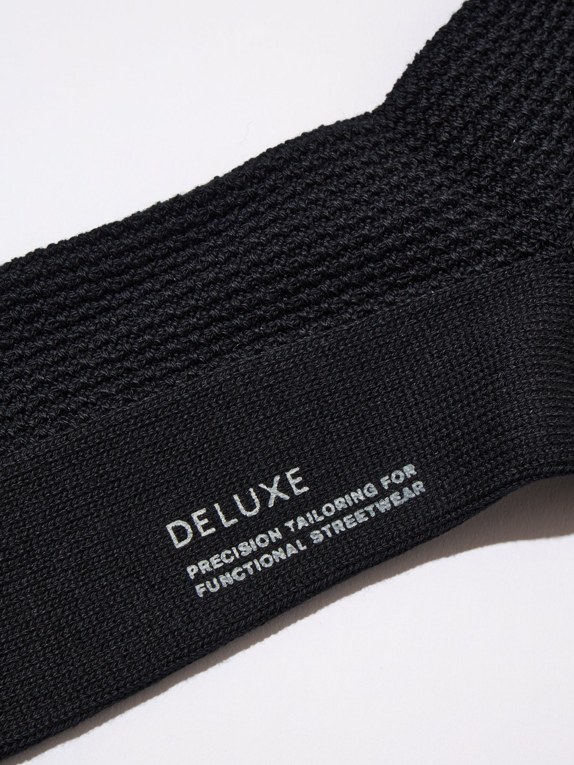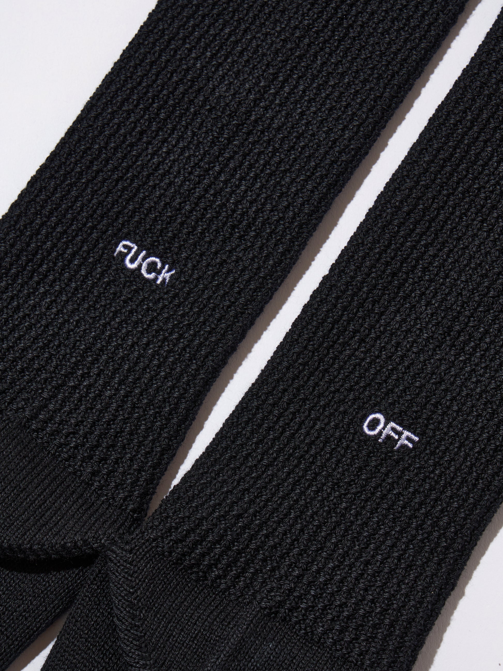 アンクル丈のレングスをしたオリジナルソックス。 両足背面にメッセージ、底部にブランドロゴをラバープリント。