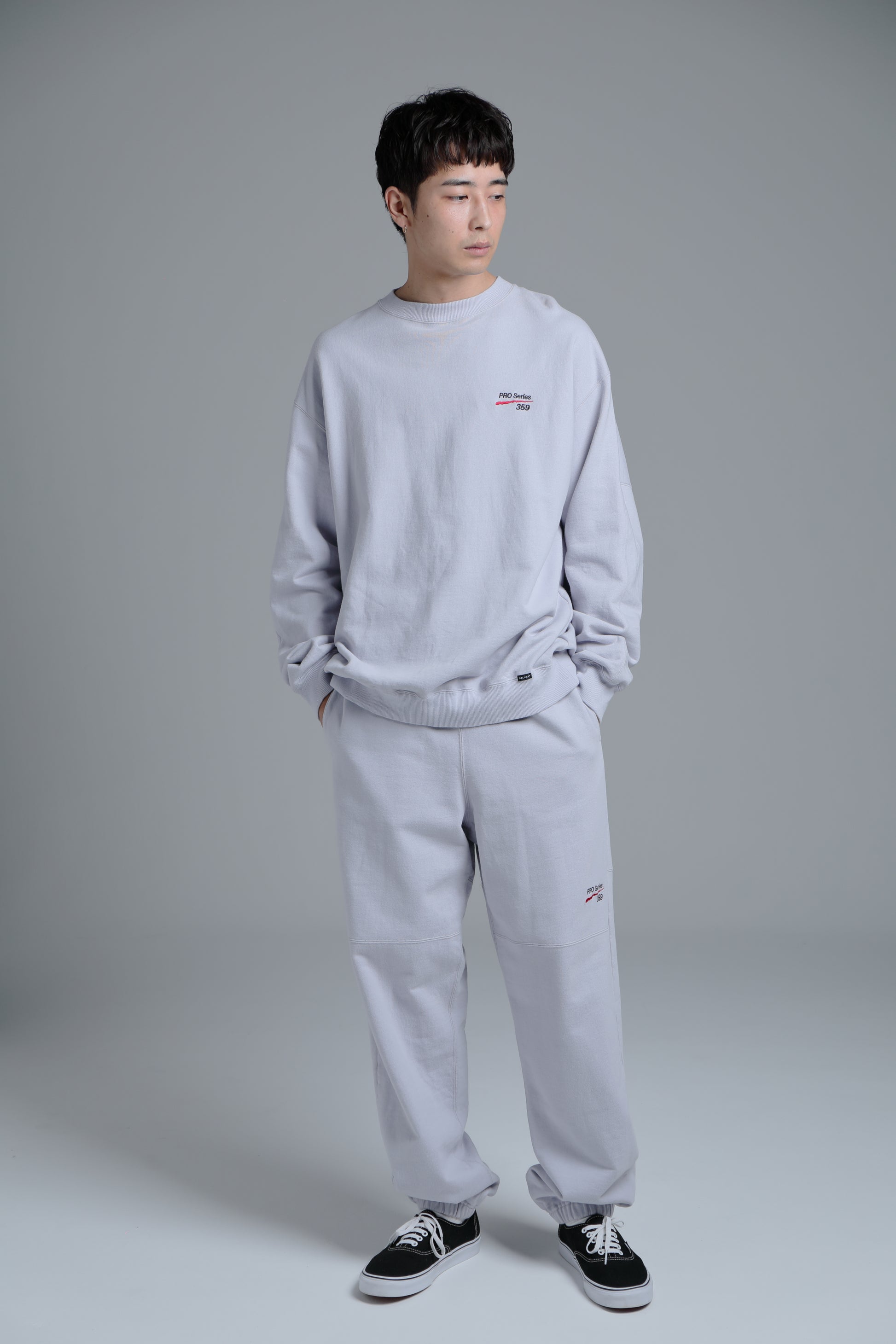 オリジナルで作成した風合い豊かなコットン裏毛素 材を使用したクルーネックスウェットシャツ。左胸にオ リジナルグラフィックをエンブロイダリー、前身頃の右 下にネーム、左袖口にブランドロゴをラバープリント。 裾リブ左上段にピスネームを挟み込み。ドロップショル ダー、身幅にゆとりのあるシルエット。