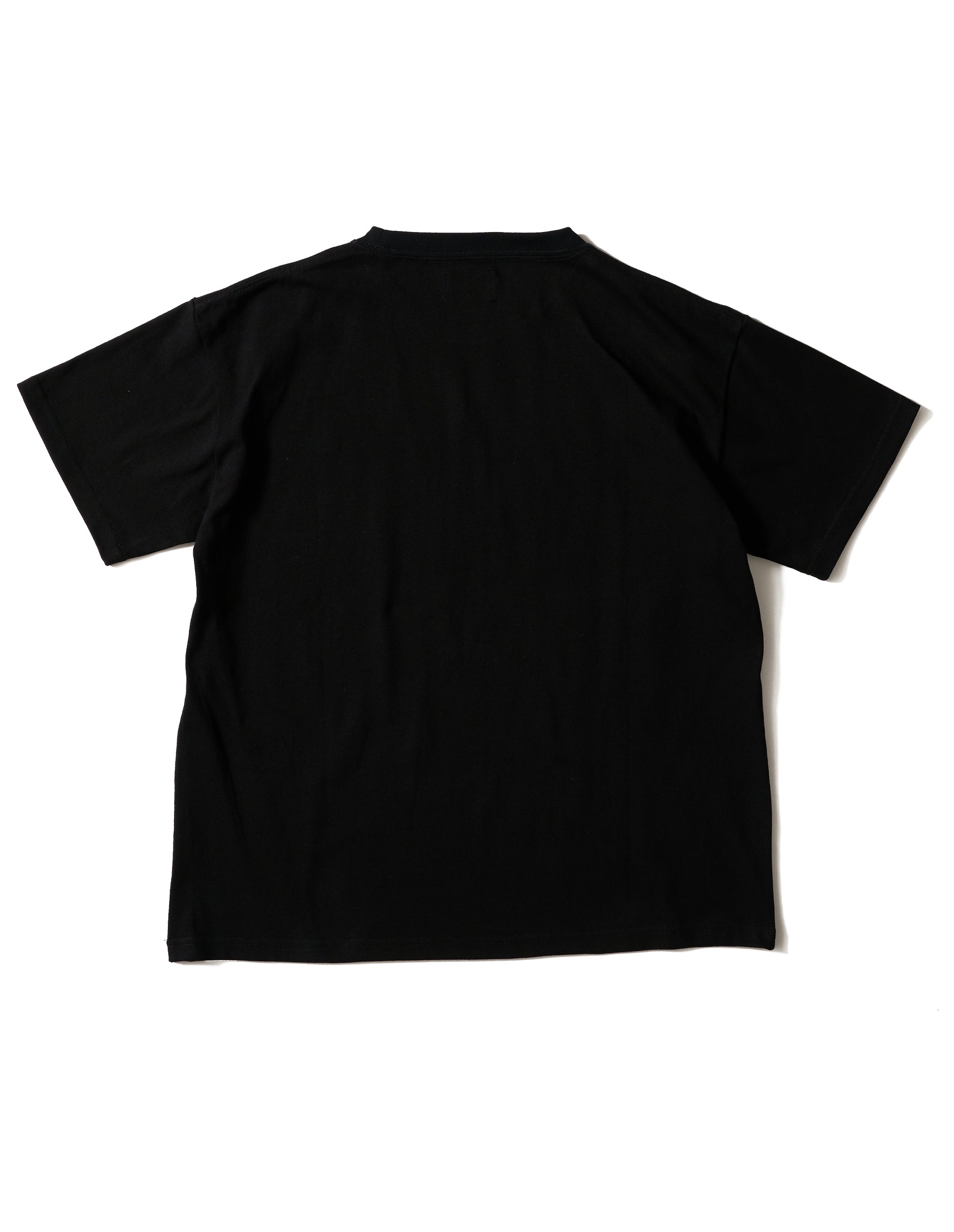 オリジナルで作成したコットン天竺素材を使用したショートスリーブTシャツ。フロント胸元にブランドロゴのオリジナルグラフィックをマッドラバーの厚盛プリント。左裾に刺繍ネームタグの叩きつけたデザイン。レギュラーフィットシルエット。WHIT・BLKの2色展開。