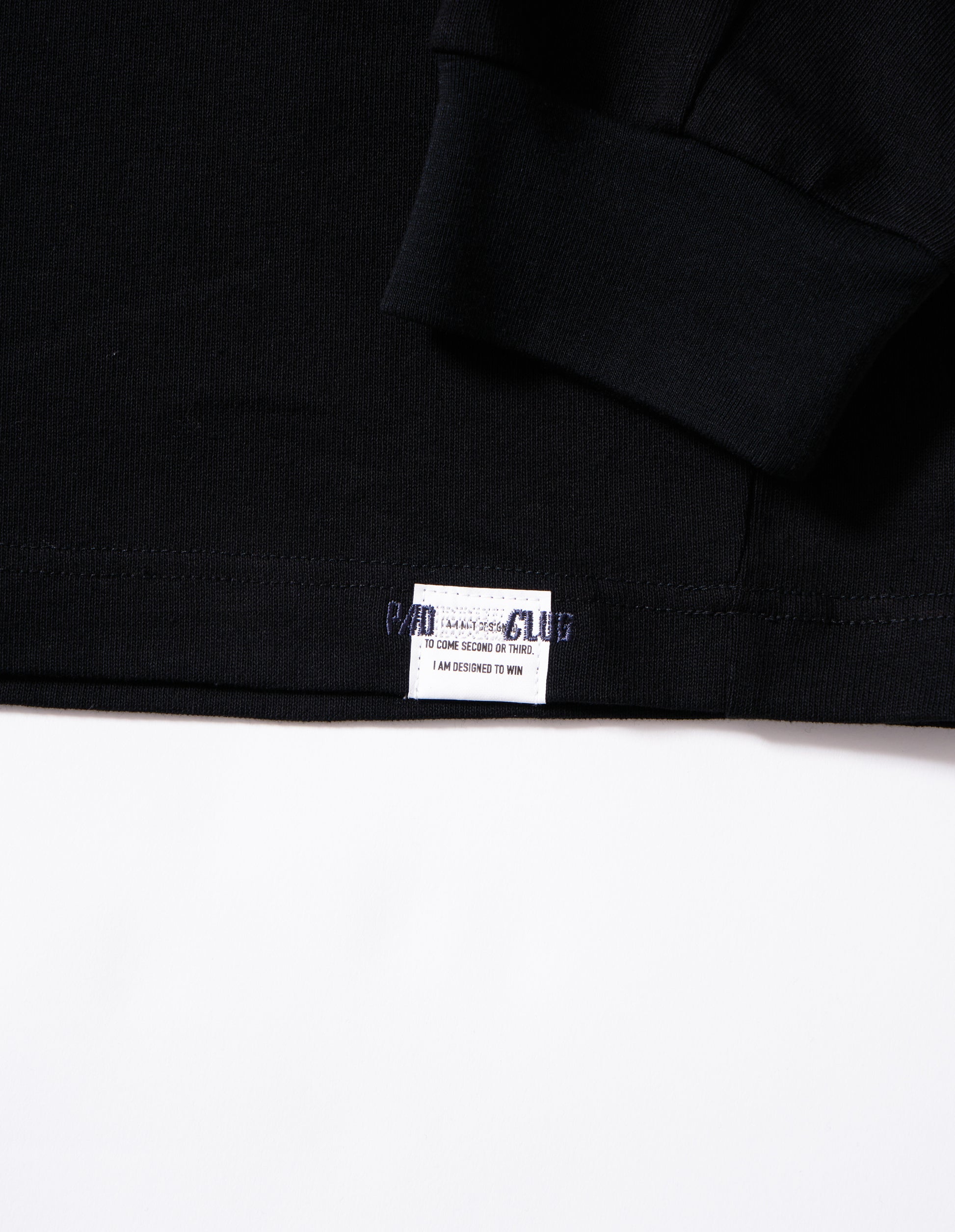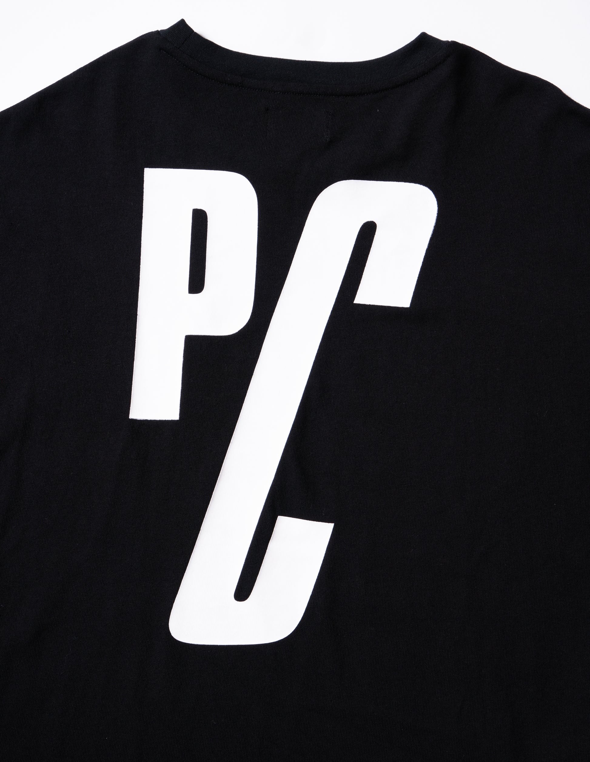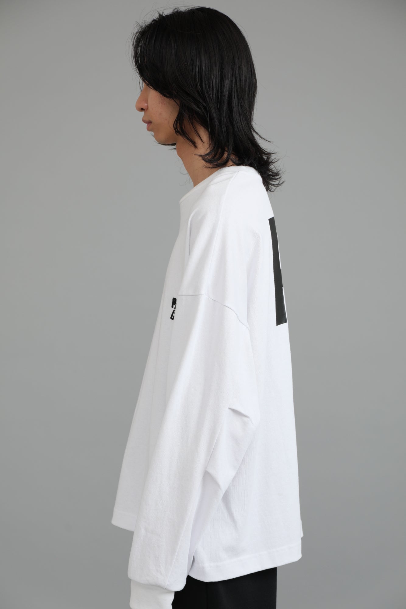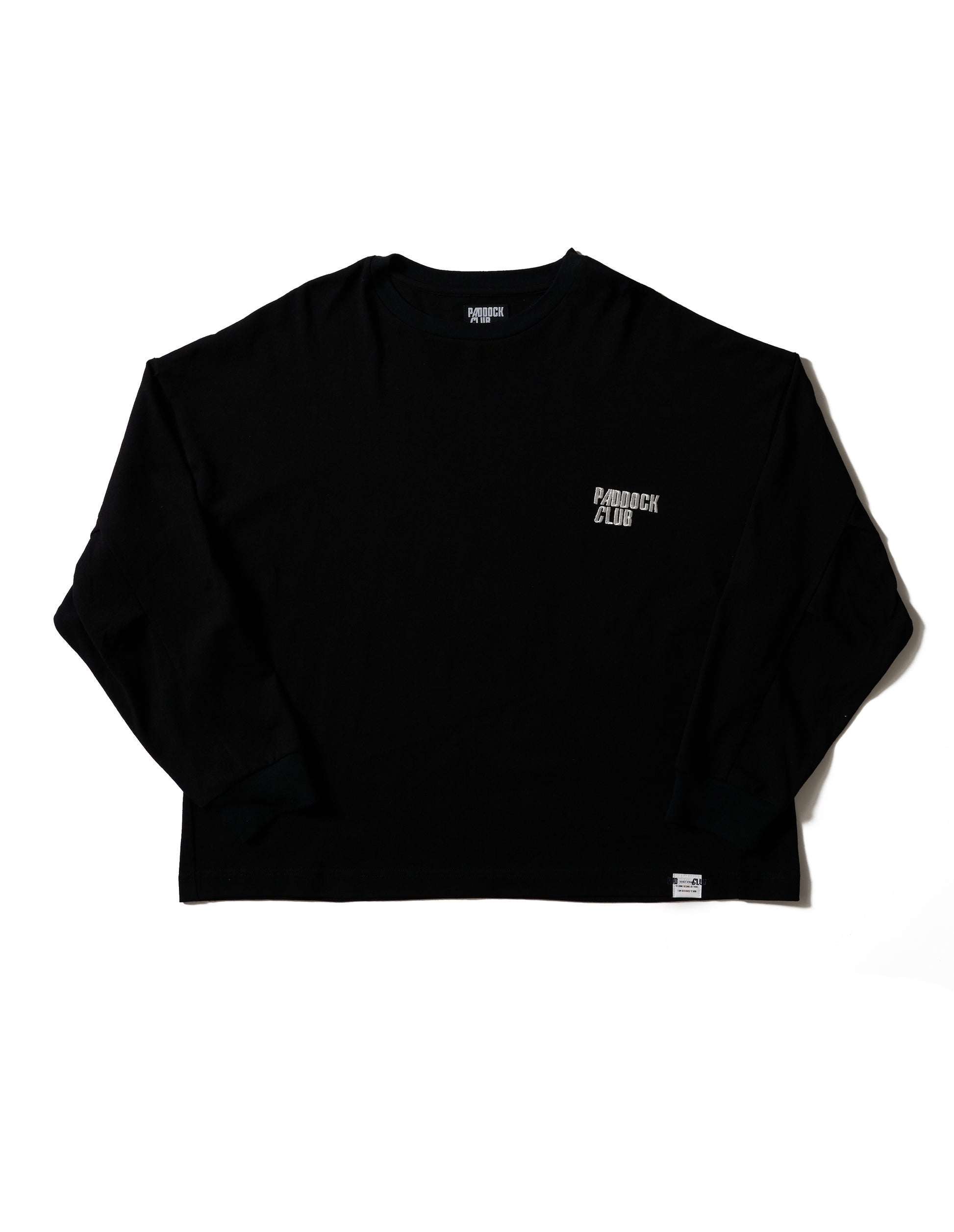 オリジナルで作成したコットン天竺素材を使用したロングスリーブTシャツ。フロント左胸にPCロゴのエンブロイダリー、背面全体にブランドロゴのオリジナルグラフィックをマッドラバーの厚盛プリント。左裾に刺繍ネームタグの叩きつけたデザイン。レギュラーフィットシルエット。WHIT・BLKの2色展開。