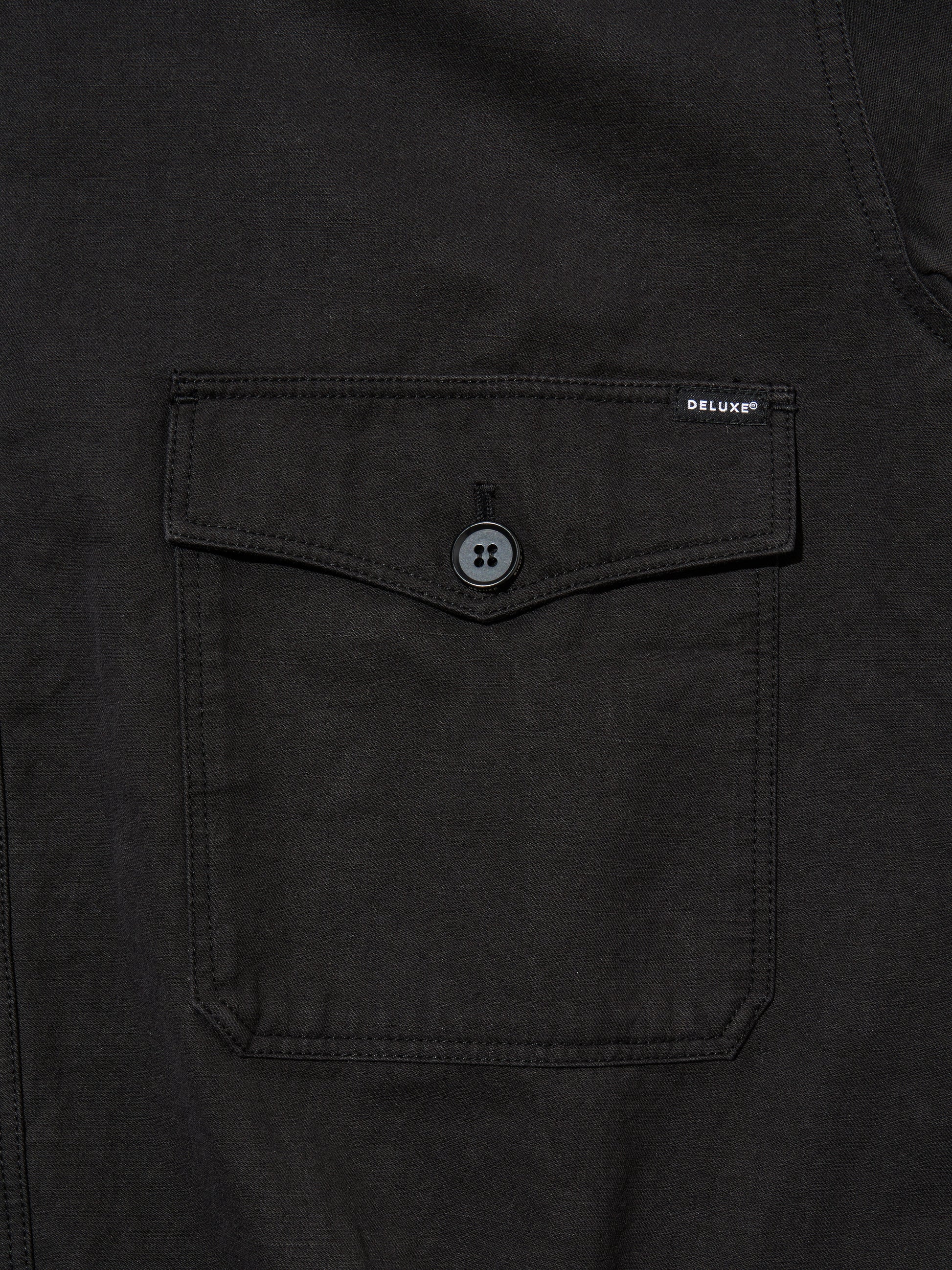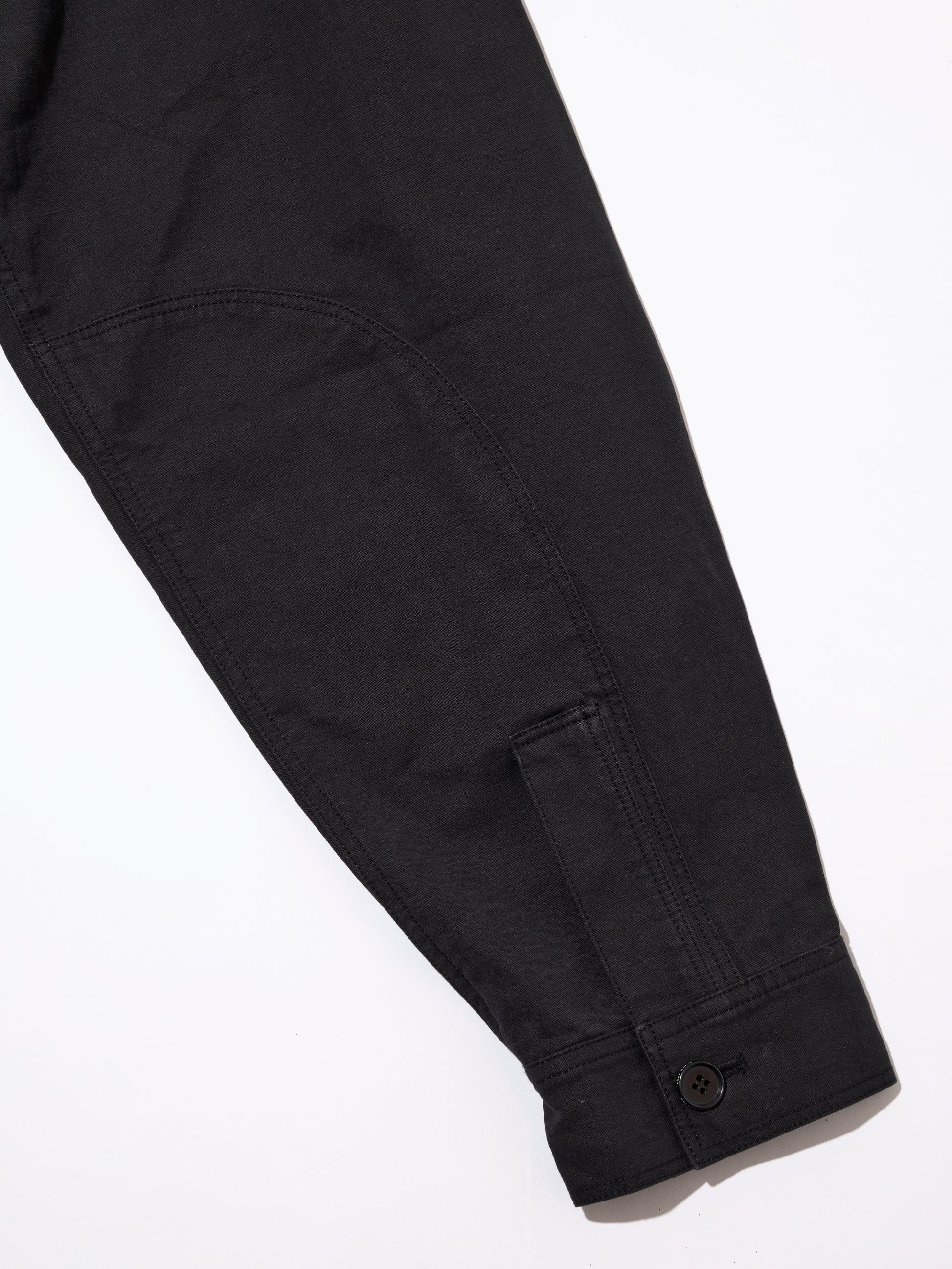 ヴィンテージライクな加工を施したコットン/リネ No. ンの混紡素材を使用したショート丈ブルゾン。両胸にフラップポケット、左ポケットフラップにピスネームを配置。 前立てはボタン留め。裾中央右にアジャストボタンを付属、フロント・バックにプリーツが入り裾を絞るとバルーン型 Delivery month シルエットに変形しての着用が可能。衿内側にはステッチを 4 ライン分打ち込んだ手の込んだ意匠も特徴。身幅が広く、着丈が短めなシルエット。3 色 4 サイズ展開。