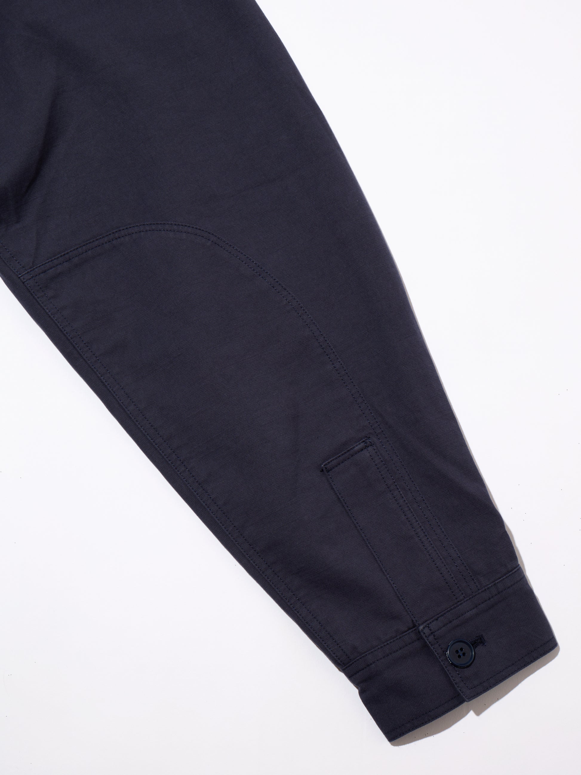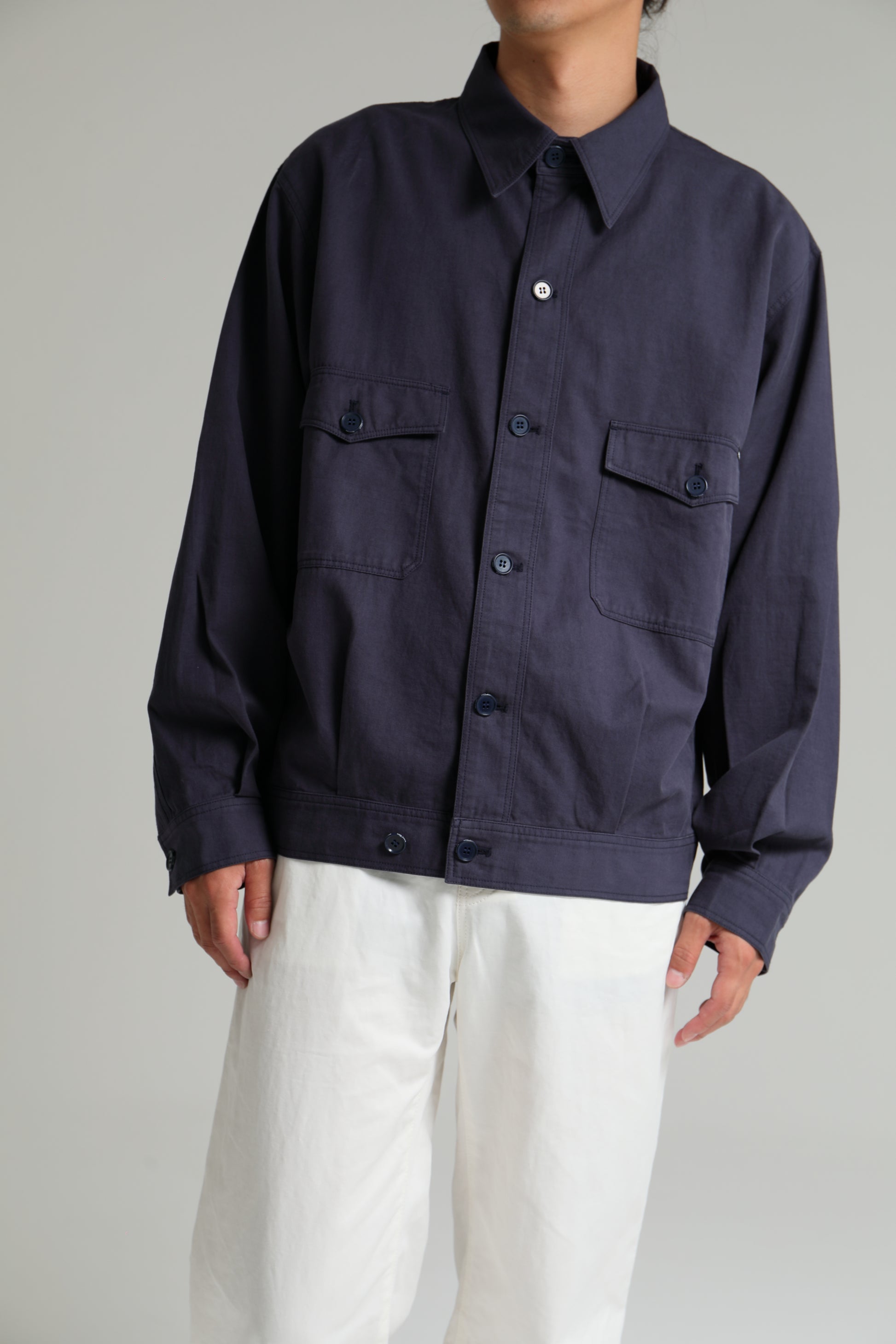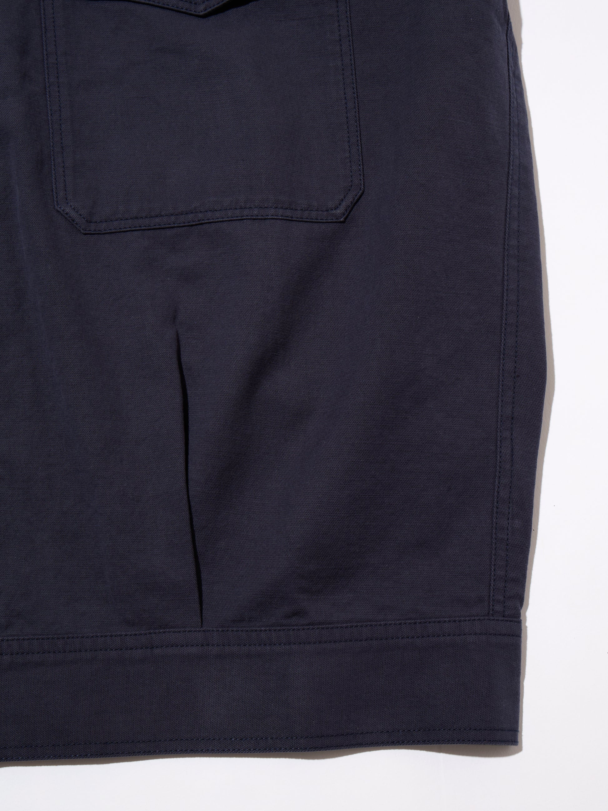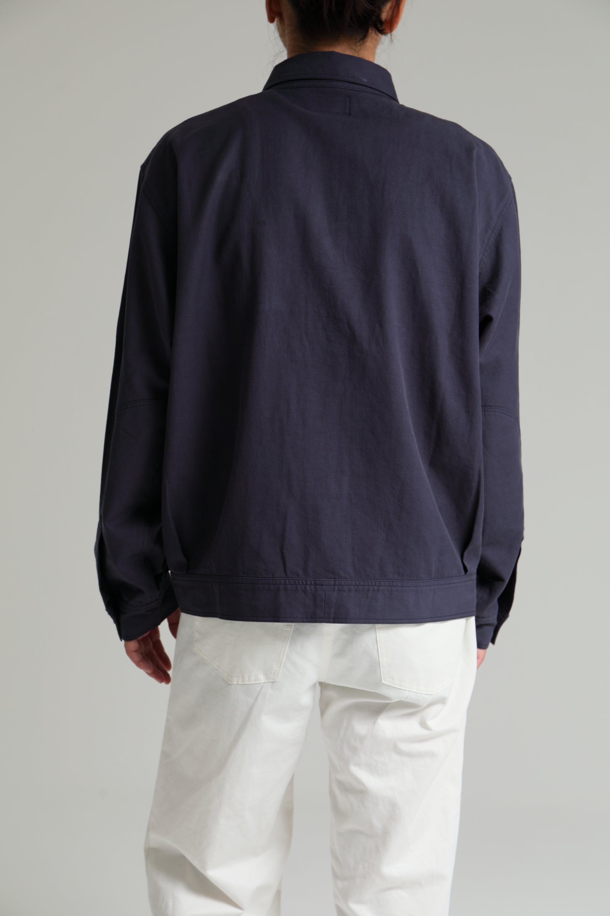 ヴィンテージライクな加工を施したコットン/リネ No. ンの混紡素材を使用したショート丈ブルゾン。両胸にフラップポケット、左ポケットフラップにピスネームを配置。 前立てはボタン留め。裾中央右にアジャストボタンを付属、フロント・バックにプリーツが入り裾を絞るとバルーン型 Delivery month シルエットに変形しての着用が可能。衿内側にはステッチを 4 ライン分打ち込んだ手の込んだ意匠も特徴。身幅が広く、着丈が短めなシルエット。3 色 4 サイズ展開。
