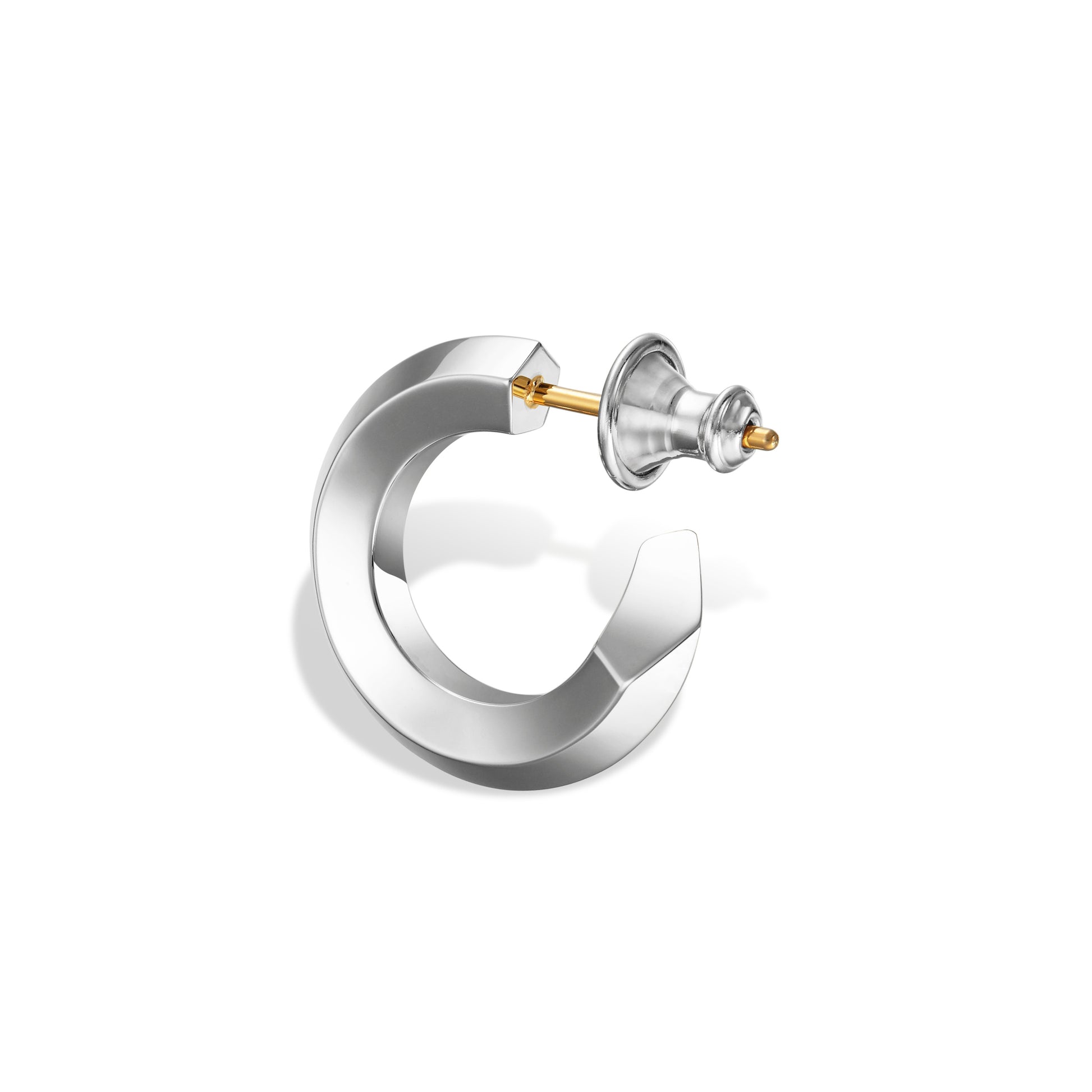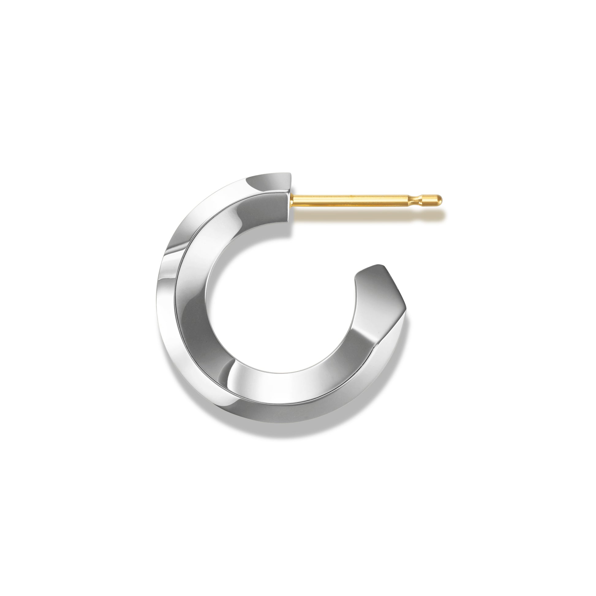 カッティングの美しさが際立つ多面カットを施した五角形のフープピアスになります。シンプルながらも建築的な美意識を感じさせるユニセックスなデザイン。多面カットによってあらゆる角度から光を取り込み、耳元で洗練された輝きを放ちます。ピアス本体は、SILVER925 を使用しております。ポスト部分は金属アレルギーを最大限考慮した 18 金素材を使用。